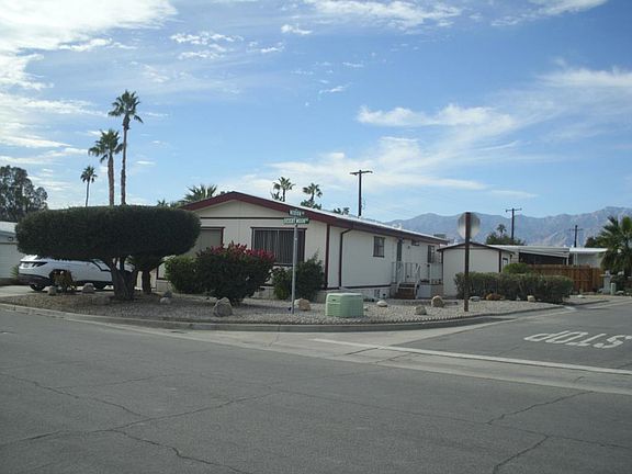 Appointment Only! This well-maintained 2-bedroom 2 bath home sits on a long corner lot. Close walking distance to the Club house. Offered turnkey Furnished. Very bright a clean. New kitchen counter tops. Large patio deck.,2 sheds. Tri Palm Estates is a 55+ community with many social activities, Low HOA fees allow 2 owners on deed all the golf they can play on our 2 fine Golf courses, Shuffleboard courts, Tennis and pickleball courts, 2 pools, 2 hot tubs, Restaurants and Bar. Close to Costco, Sam's Club, Walmart, Home Depot, Lowe's, And many fine restaurants.