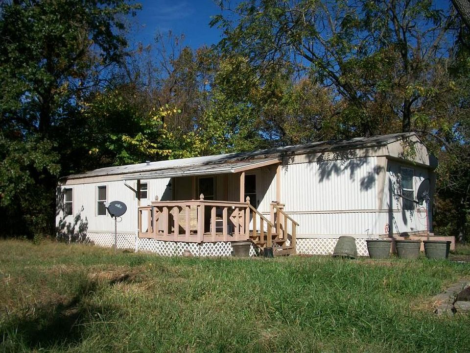 Single wide in good shape on 2.7 acres with a pond. Formerly a small trailer park, this property would make a good starter home or rental. Plenty of room to build in the back. 2 septic systems and a well on site. Covered front deck to enjoy your quiet morning cup of coffee.