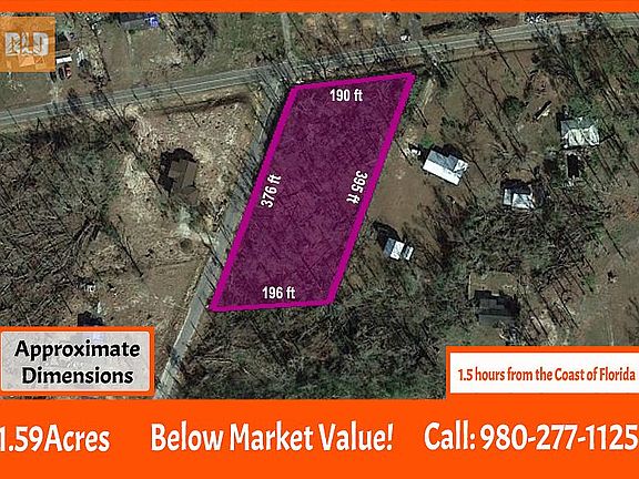 1.59 acres in Marianna, FL **1.5 Hours from the Florida Coast *28% BELOW MARKET VALUE! A nice wooded corner lot located in a quiet community just outside of Marianna Fl. This 1.59 acre lot can be the perfect location for raising a family while enjoying the endless adventure Florida has to offer. Marianna provides a small town feel with Tallahassee, Panama City, and Pensacola located only about an hour away. With two of the most popular beaches on the Gulf Coast of Florida, Destin Beach and Panama City Beach, just over an hour away you can easily spend your weekends relaxing on some of the most beautiful beaches Florida has to offer. *Please note: Trees on the property have some damage from a previous Hurricane. Property Details Address: Bobkat Rd, Marianna, FL 32446 County: Jackson APN (Assessor’s Parcel Number): 25-5N-10-0314-0000-0200 GPS Coordinates to locate property: 30.800911, -85.189781 Lot size: 1.59 Acre Approx. Dimensions: 192ft X 400ft X 194ft X 391ft Zoning: Building restrictions to Single Family Homes (Modulars and Stick Built Homes) Sewer/Septic: Septic Needed Water: Well Installation needed Electricity: Service provided by Duke Energy Annual Property Tax: $135.29 Amenities Food 8 minutes away Grocery 8 minutes away Pharmacy 8 minutes away Hospital 9 minutes away Entertainment Florida Cavern State Park 5 min drive Blue Springs Recreational Park 9 min drive Panama City Beach 1 hr 20 min drive Destin Beach 1 hr 40 min drive Nearby Cities: Tallahassee 1 hr and 10 min drive Panama City 1 hr and 20 min drive Pensacola 1 hour drive Make this property YOURS for a cash discounted price of $10,900! We are motivated to sell - All offers will be considered! Message, call, text or email us today to get started. We make it super easy for you! 980-277-1125 discountedlanddeals@gmail.com **As with any purchase of land, Buyer is responsible for verifying all information with the city/county as to what can and cannot be done with the property and confirm availability of any utilities/services for the property. Seller makes no warranties or representations about the land.