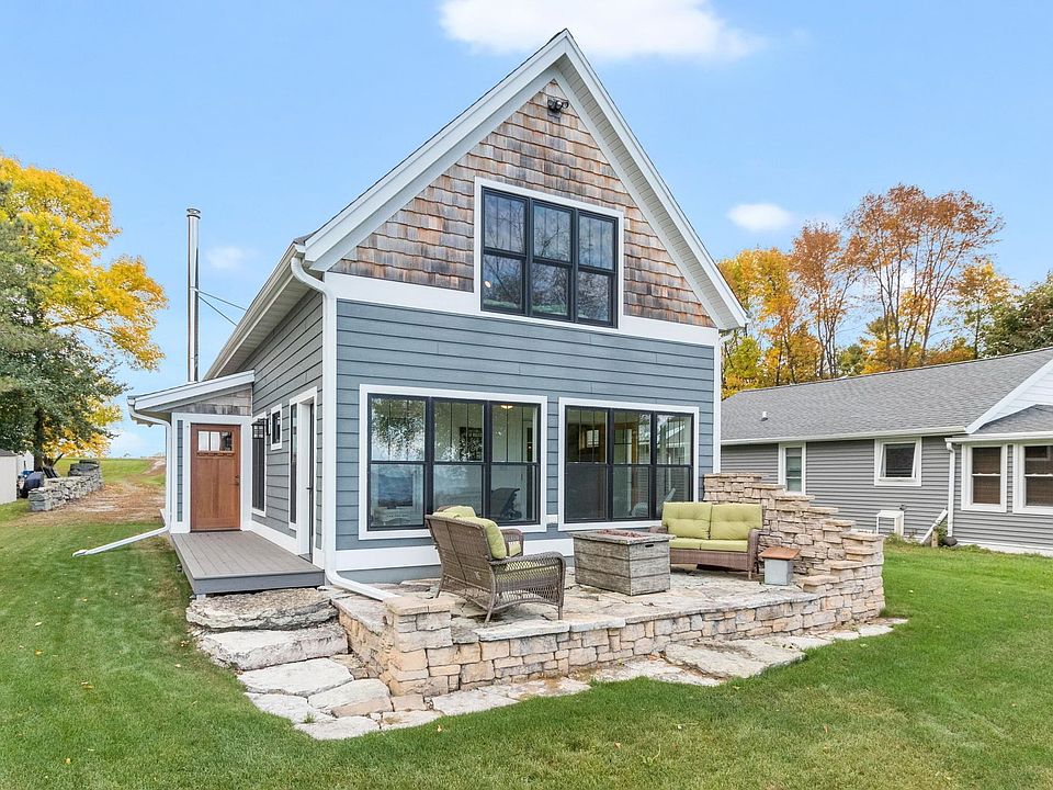 This amazing A Frame hm has everything you could want is a waterfront property. Built in 2014 it boasts a gourmet kitchen, granite tops, island w/built-in microwave. Upon entering your eye will be drawn to the soaring vaulted ceiling engulfed in natural pine planks these sound absorbing planks incase the entire ceiling of the hm add beauty & warmth to the open concept for entertaining & gatherings. The in-floor heat throughout the main flr adds luxury & thermal for cool nights. This year-round home is a water enthusiast's dream w/ LP Smart Vinyl. Enjoy the day on the Bay & retreat back to hm.
