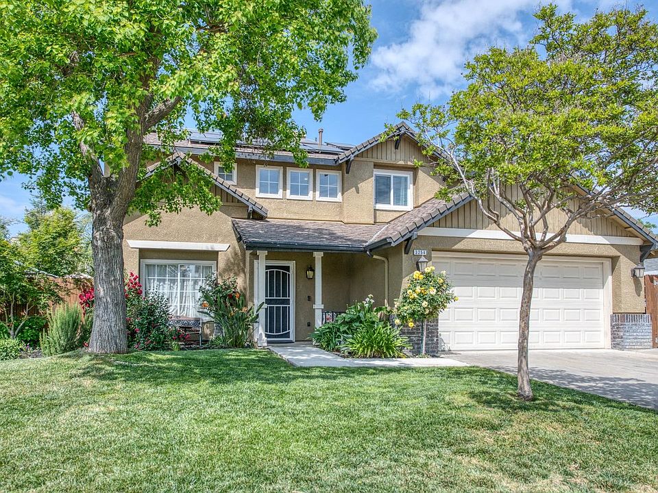 Come home to this beautiful 4 bedroom, 2.5 bathroom home in the Clovis Unified School District. Large, light and bright home with the added benefit of NEM2 solar panels! Step inside to find a spacious living room on the first floor, remodeled kitchen complete with stainless steel appliances, updated lighting, and cabinetry. Unique second floor loft (which could easily be converted to a 5th bedroom) overlooks the downstairs, perfect for a kids play area or informal family room. The master bedroom and bath feature wood plank tile flooring, his/her closets, a soaking tub, and shower. Convenient downstairs bedroom can also be used as an office or gym. This home has a picturesque oasis into the backyard. Outside, the extensive backyard boasts of a large covered patio and swimming pool with updated equipment, perfect to entertain family and friends. There is even a children's play-set included in the sale. Many of the home's windows have recently been replaced, and the garage is extra deep for additional storage. RV parking space with plenty of possibilities for the side yard, all in a convenient neighborhood close to schools, shopping, and entertainment. Schedule your appointment to view this home today!