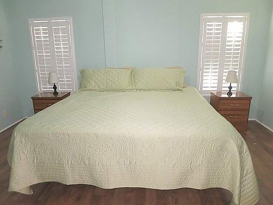 Imagine an open airy floor plan that has a real Florida resort feel. Furnished and ready for move in. Laminate flooring throughout, fresh interior paint, plantation shutters, upgraded fixtures and appliances, new roof 2012, enclosed AC Florida room, 12x20 storage workshop with roll up doors in beautiful community. SB1709 Over 700 homes available at https://www.fourstarhomes.com