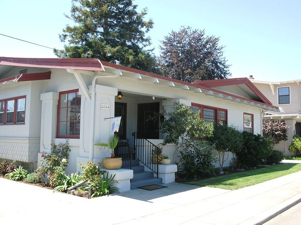 Come home to one of Alameda's most desirable neighborhoods in the coveted East End. This light and bright very traditional bungalow boasts plenty of craftsman details. Its formal living room hosts a stone fireplace flanked on both sides with the original built-in shelves. Picture yourself in the dining room sharing many family holidays and serving meals from the built-in cabinetry. Marvel at the gleaming oak hardwood floors! The kitchen and bathroom have both been tastefully remodeled. Granite countertops, a new dishwasher, sink, faucet, garbage disposal & newly tiled floors round out the kitchen. The bathroom reveals a new vanity, faucet, tub surround, light fixture and tiled floor. A bonus room leading you to the very private master bedroom can be an office space or a place for relaxation. The backyard is drenched with sun and with an in- ground fire pit and seating area its perfect for entertaining your friends and family. A child's playhouse is a nice getaway and is made from 100% recycled materials. And for you, a hot tub to start or end the day with a good soak. This home also has a cellar for storage or could be for stashing your extra wine. The one car garage is connected to the laundry room both of which have been finished with drywall and clean as a button. Come and feel the warmth this home has to offer, walk the neighborhood and fall in love with its charm. And know that you are a stone's throw from the beach and a skip to the locally owned gourmet grocery, Encinal Market.