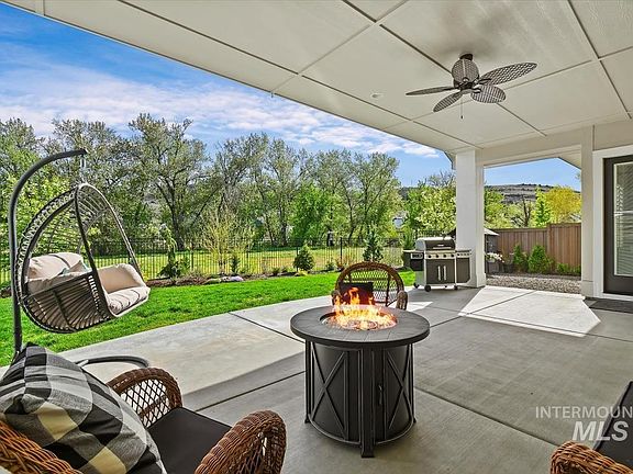 A gorgeous upgraded Modern Farmhouse, set on a premium homesite backing directly to the Dry Creek nature trail with no backyard neighbors. This desirable single level lives comfortably with incredible finishes, 10'-12' ceilings throughout, and a fabulous split-bedroom design. Oversized master is ideally located off the back of the home to bring in natural light and take advantage of the backyard views. A wide set of telescopic sliding glass doors invites indoor/outdoor living, where residents can enjoy multi-season comfort on the expansive northeast-facing covered patio overlooking inspiring foothill views. The spacious gourmet kitchen includes a 10ft custom granite island with an upgraded soft touch faucet and sets a stunning stage for the at-home chef, with built-in Bosch® appliances. Plenty of storage with generous white soft-close cabinets with gold hardware, a walk-in pantry with sliding barn door, and elegant quartz counter tops throughout the house. Tons of room in the 3-car garage.