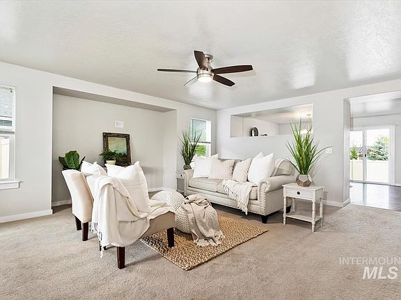 A Meridian address with the county lifestyle Kuna has to offer. The Sundance 2710 floor plan gives you all the room you and your family will need. The upstairs features four large bedrooms with a very spacious loft area, perfect for the kids or many other options! Conveniently located downstairs bed room, separate laundry room right off the kitchen, expansive open concept Kitchen features a glass top free standing stove/oven, white cabinetry, Stainless steel refrigerator, dish washer, walk in pantry and built in desk/Media area. Extra large lot with a backyard that has multiple possibilities. No rear neighbors. located just down the street from the Community pool. Great mountain views.