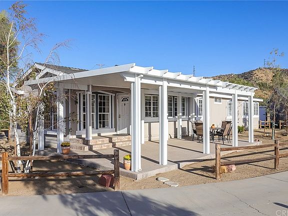 You will FALL in love with this home. Come sit on the front porch of this home and enjoy the evening sunset views. Open floor plan keeps everyone together when you are entertaining. Master bedroom is double in size so there is amply room to have a retreat or exercise area. Master bathroom has been beautifully updated with walk in shower, tile floor and vanity. Enjoy the warmth of the wood pellet stove during the colder months. Paved asphalt driveway to house with long concrete driveway for parking.The garages consist of a 2 car and another 1 car attached to it with an extra workshop area. Both have the taller 8ft doors. There are full RV hook ups with dump.This home sits on 5 acres with many horse trails or hiking right out your backyard. A great place to call home.