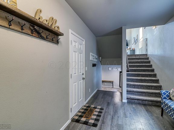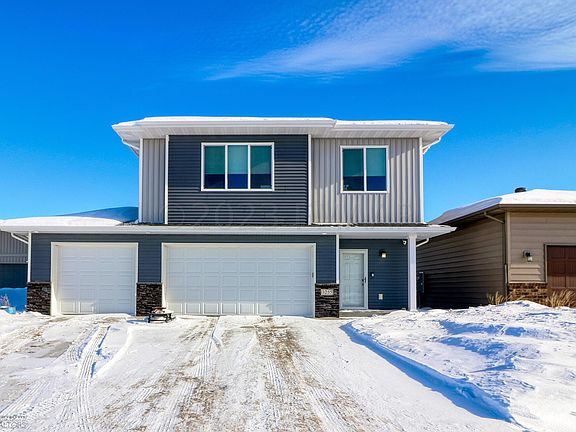 NO BACKYARD NEIGHBORS! Enjoy this stunning 3 level split situated in desirable Bison Village development of Fargo! The home features 4 bedrooms with bonus room/ office, 3 full bathrooms and 3 stall garage! The main level provides lofted cieling's + an abundance of natural daylight throughout. The open concept living area features gas fireplace ready for you to enjoy with company. Kitchen includes massive eat-up island, walk-in pantry, & additional closet for extra storage. Head to the upper level to find laundry conveniently right off primary suite that features private bathroom with dual sinks + WIC, second bedroom and a full bathroom located nearby.