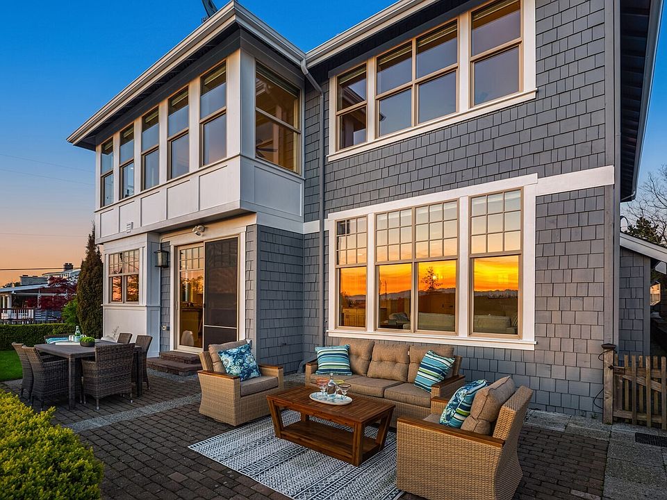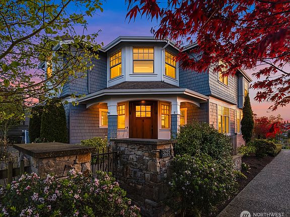 Ideally located Queen Anne Colonial captures the essence of PNW coastal living. Prominently sited on a large peninsula lot to capture breathtaking 220-degree views of Puget Sound, the Olympics, and Cascades, this sanctuary embodies relaxed sophistication. A dramatic two-story entry welcomes you to interiors adorned with crown moldings, wainscoting, and hardwood floors throughout. The heart of the home is an entertainment-sized great room featuring box-beam ceilings and a handsome fireplace, seamlessly flowing into a gourmet kitchen designed for both casual and formal dining. Desirable four bedrooms up plus bonus room offer stunning vistas, while the exterior boasts meticulously landscaped grounds and a private patio, ideal for gatherings.