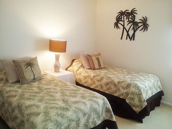 Nicely-furnished ground floor 2BR, 2 BA condo with screened lanai overlooking pond and fountain. This wonderful community offers tennis courts, two heated pools, and an exercise room. Living room/dining room combo, kitchen, Master bedroom has king bed; guest has twins. Sparkling-clean onsite laundry facilities. Great location central to everything -- beaches, shopping, downtown and I- 75. 3-month minimum during season. Rate Jan-Apr $2050/mo includes internet - no pets , pick ups or motorcycles permitted.