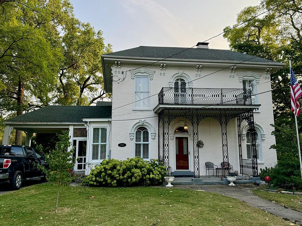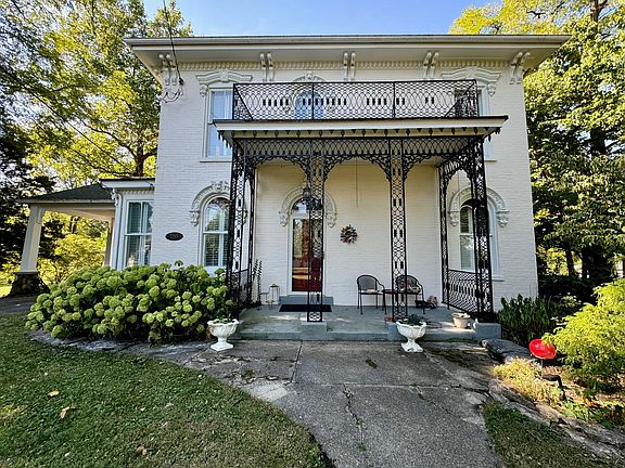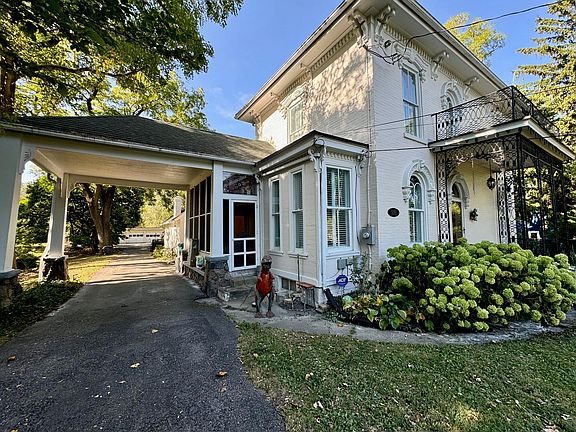This home could make a perfect mini farm as it is situated on nearly 3 acres of land, the owner used to have a few goats! It is thought that this beautiful home is of the French Provisional Style with its stately presence and large windows that offer loads of natural sunlight and high ceilings. The kitchen has been completely remodeled with newer soft-close cabinets, granite countertops, and updated appliances. A first-floor laundry room with additional pantry space adjacent to the kitchen complete with a granite countertop perfect for folding laundry. There is a living room as well as a family room with French doors that lead to a stone patio. A grand formal dining room. The home also has a first-floor bedroom with wide plank wood flooring attached to another room currently used as an office, and a full, completely remodeled bath with double sinks, a step-in shower, newer vanity and flooring. The home has a front and back stairwell. Adding to the extra light in the house you will note many transoms. The home has a brand-new septic in 2019. The outside of the house was freshly painted approximately 3 years ago. The roof is approximately 10 years old. The home has a 3-car detached garage, a lean-to which taller vehicles may fit, there are also a couple of small stalls back there and a small, fenced area for animals. There are fruit trees and a fenced area of the yard.
