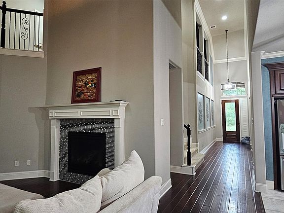 Welcome home to Barotn Woods and the coveted Conroe Independent School District. This home by Trendmaker feautures four bedrooms and four full baths featuring 2 bedrooms downstairs and 2 bedrooms upstairs. A gourmet chef's kitchen awaits you with a granite island, walk-in pantry, stainless steel appliances, wine fridge, double ovens, and gas cook top. This home also features custom stone walls, stunning high ceilings, upgraded lights, gas log fireplace, and large game room/ media room upstairs. Complete with high end upgrades, there is a full gym along with a hidden safe room. This beautiful home features a large primary bedroom with large windows, stone accents, his and hers sinks, and two large walk-in closets. Area ameneties include pools, parks, playgrounds and walking trails.