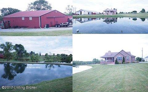 AG-1 Farm Ready to Operate includes charming Brick/Stone Cape Cod with beautiful landscaping, wrap-around porch, gorgeous fish pond, 75x65' barn, detached & attached garages. The home boasts a large great room overlooking pond and open to dining area and kitchen, large laundry with custom cabinetry, master suite with whirlpool & walk-in shower, another large bedroom and second full bath on 1st floor. Upstairs is another bedroom & spacious half bath. Driveways on both sides of property for ease of use. Ready for livestock with lots of fencing & a small pond at rear and spring to rear of property. Barn has new slider door & 100 amp service for camper hook-up. Separate 200 amp service to front garage. Beautiful views. You can catch big fish in the stocked pond from the porch. Don't miss out!