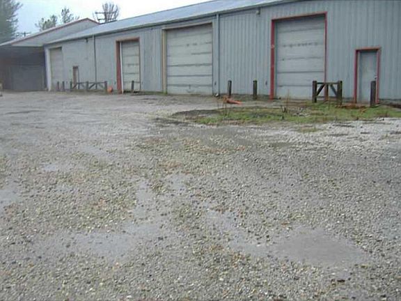 6 acres on the east side of Old State Rd 37 into Old 37. The house serves as the office and there are 2 older metal buildings with approximately 8,000 square feet total. Much of the ground is cleared and level for parking and expenses. Not in flood plain but has water issues when neighboring pond over flows.