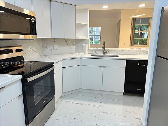 Located in the gated community of Village by The Bay in Aventura, this residence offers a modern kitchen with new appliances including a stove, microwave, refrigerator, and dishwasher. The home features a spacious closet and a large bathroom. Community amenities include two heated pools on the bay, a fitness and yoga center, Jacuzzi, tennis courts, business room, and recreation clubhouse. The property provides 24-hour surveillance and convenient guest parking.