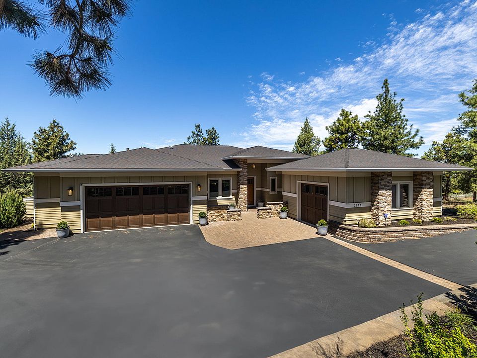 Enter this stunning single level home and experience the splendor of the majestic Cascade Mountains. Home features Birch hardwood floors and tons of Alder cabinets in the spacious kitchen with island. The layout includes Jack and Jill bedrooms separated from the primary providing privacy for family and guests. Additionally, his and her closets in the primary offer ample storage. Marvel at the unparalleled views through triple paned windows. Control the natural light with an electric sunshade in the great room and immerse yourself in entertainment with surround sound throughout the home. Amenities continue with a central vacuum system, a security system and heated floors in the bathrooms. Step onto the covered deck with heaters and ceiling fan and sit in tranquility while viewing the mountains or venture onto the expansive stone paved patio and gather around the gas/wood firepit. Earth Advantage silver certification reflects its commitment to sustainability and efficiency.