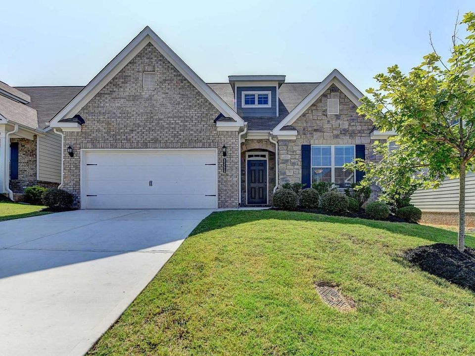 PRICED BELOW MARKET! Bright and charismatic South Hall cul-de-sac home located on the Highlands to the Islands Track on the Friendship Road Pathway. Wide entry foyer leads to living area accented with a stone fireplace and mantle. Oversized primary bedroom on the main floor has 2 walk-in closets. The open floor plan boasts a kitchen with 42" cabinets, stainless steel appliances that include the refrigerator, breakfast/buffet bar and walk-in pantry. The first level also includes flex room perfect for a dining room, living area or private office. The laundry room includes the washer and dryer. Good storage under the stairs. Upstairs includes 3 large secondary bedrooms with walk-in closets, and a loft suitable for media, games, den, office or homeschooling. Covered back patio is perfect for relaxing. Community amenities are a 2 minute walk and include dog park, pool, tennis, pickleball, playground and clubhouse available for rental for meetings and private events. Trinity Falls is close to shopping, parks, Lake Lanier, and the expanding Northeast Georgia Hospital. The community is walkable, bicycle and golf cart friendly.