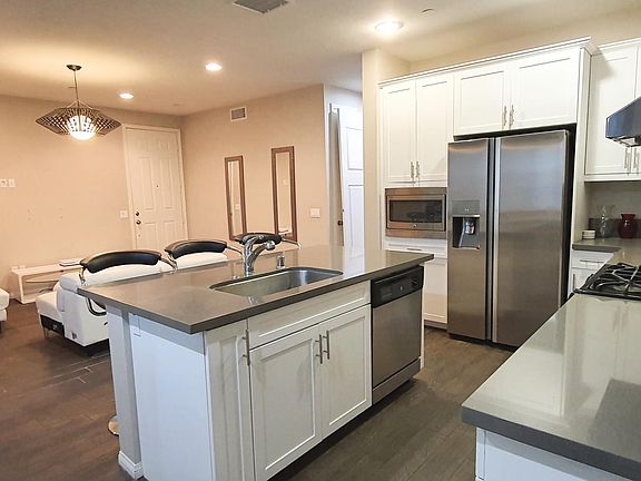 A beautiful model solar home gated community built in 2016, 4 beds and 3 full baths. Close to 10 freeway, nearby In-Out Burger, Bank of America, Target, Walmart, Ikea, Sprout Farmers Market, and LA Fitness..85 degree Bakery Cafe....etc. Beautiful kitchen include stainless appliances, high-end refrigerator, quartz counter top, tile hardwood floor, white shaker cabinets, built-in microwave, exhaust fan, stainless oven and gas stove. One bedroom downstairs !! and 3 beds upstairs including master, the masterbedroom comes with large bath and walk-in closet. Individual Laundry Room upstairs, and an extra loft upstairs for your gaming or study room. Strictly NO PETS!! Please text Joy 626-500-511 for your interest Tenant pays all utility, except HOA.