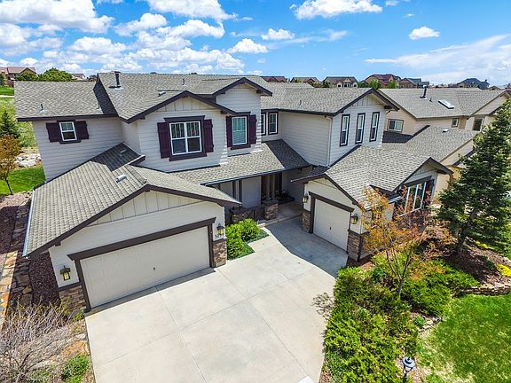 https://www.youtube.com/watch?v=x1TmloteinY&feature=youtu.be Stunning two story home backing to the prestigious Pine Creek Golf Course * Welcoming covered entry leads to open foyer w/ extended hardwood floors, detailed arch doorways, formal dining room w/ crown molding & dry bar * Gourmet Island Kitchen features new slab granite countertops, tile backsplash, hardwood floors, cooktop, wall oven, microwave/convection, new dishwasher, pantry & walk-out breakfast nook * Cathedral ceilings w/ a wall of windows make the great room open & bright w/ gas log FP * French doors to HUGE Master Formal living room, office and laundry room with lot of folding space and a sink complete the main * Upstairs features a true master suite with large sitting area, his and her walk-in closets, adjoining five piece master bath w/ jetted tub and freestanding shower, two additional spacious bedrooms and a full bath complete the upper level * The lower level features 9ft ceilings, game room, family room, two bedrooms and a full bath * Enjoy the Colorado evenings on the covered patio * Security system, lots of storage space, work bench in the third garage, professional landscape and more * You won't want to miss it!