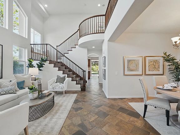3255 Rancho Companero is a rare opportunity to own an end-lot residence in one of Coastal Carlsbad’s most coveted and family-friendly neighborhoods. Set on a private, oversized lot, this elegant home offers a seamless blend of comfort, sophistication, and coastal charm. Inside, soaring ceilings and an abundance of natural light create a bright, airy ambiance throughout. The upgraded chef’s kitchen is equipped with a brand-new oven and sleek finishes, perfectly designed for both daily living and upscale entertaining. Additional upgrades include a new water heater, solar panels, and central A/C for modern efficiency and comfort. The versatile layout features a main-level bedroom and full bath, ideal for guests or multi-generational living. Upstairs, you'll find three generously sized bedrooms and two well-appointed bathrooms, including a luxurious primary suite with a massive walk-in closet, panoramic views, and a private deck—a true retreat. The expansive backyard is an entertainer’s paradise, offering privacy and space to host in style. All of this just minutes from top-rated schools, upscale shopping, and the best of Carlsbad’s coastal lifestyle. This is more than a home—it’s a lifestyle. 3255 Rancho Companero is coastal living at its finest.