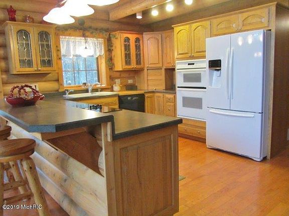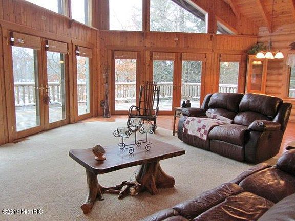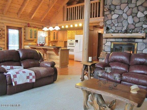 This amazing Red Cedar log home is waiting for you. Large open floor plan with living, kitchen and dining room area. Cathedral ceilings, floor to ceiling stone fireplace, snack bar and French doors leading to deck make it great for entertaining. The upper level is dedicated to the large master suite. Open cathedral ceilings with adjoining loft, master bath and walk in closet. The greatness doesn't stop there. Two additional bedrooms are on the main level. Low level walk out is unfinished and waiting for your finishing touches. Room to add additional bedrooms, game room or theater room. All ideas to make this a great vacation rental, VRBO or AIRBNB. Plenty of possibilities for both the walk out basement and the large pole building.