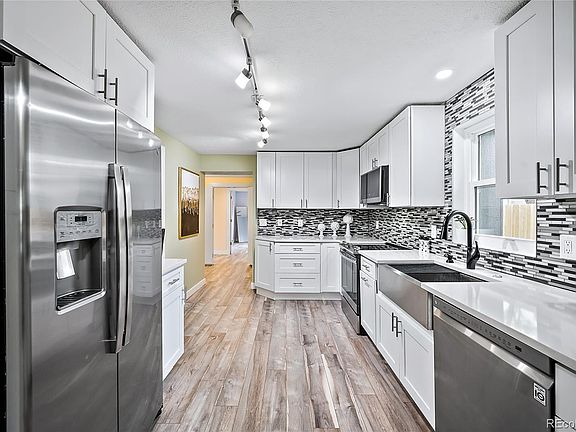 This beautiful home in Englewood, nestled in a prime location, offers the best of both worlds: a peaceful atmosphere in a quiet neighborhood and still conveniently close to all of Denver’s many amenities. This home with its gorgeous updates inside and out, epitomizes a modern and stylish living experience. Natural light floods the interior, creating a warm and inviting ambiance. The oversized kitchen is a chef’s delight, featuring quartz countertops, stainless appliances, and white cabinets. The updated spa-like primary bath provides a luxurious retreat after a long day of work and play, and an additional bath is conveniently placed between the secondary bedrooms. Laminate flooring installed throughout, adds its own touch of elegance to every room. Outside, the oversized homesite is enhanced by a new privacy fence. New siding and roof are a bonus! Parking is breeze with a three-sided carport, which also includes storage space for tools and toys of your choice. Whether you’re relaxing indoors or exploring the neighborhood, this home is sure to delight with its spacious layout and modern amenities.One of the highlights of this home is its beautiful and walkable surroundings. With parks scattered throughout the area, including some hidden gems waiting to be discovered, you’ll always have tranquil outdoor environmental spaces to explore. The location of this homesite amazing and the opportunity to expand with the size of the homesite. Close to Swedish Medical Center, great access to Broadway & 285.