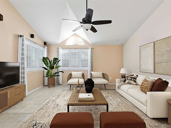 Welcome Home to this ground floor 2 car garage handicap accessible/low maintenance Tower Ridge Townhome. This home has 2 outdoor entertainment spaces one on the side yard and one on the back off the second bedroom space. Vaulted Ceilings, natural light wrapped in bright white plantation shudders welcome you upon your home entry. The large living room with high ceilings meshes into the dining and kitchen space. The kitchen boasts all new stainless steel appliances, LG dishwasher, LG microwave, LG stove, LG refrigerator, Maytag clothes washer and Maytag clothes dryer. The large primary bedroom suite with ensuite bath offers a space for reading or quiet rest. The back of the home features another bedroom with a ceiling fan and a bathroom right outside the bedroom entry. The storage space in the basement (which could be finished to add a workout room or another Bedroom) is a huge added benefit, not only do you have separate storage space but you also have additional crawl space for space as well. HOA provides great service all year round.... makes living your life less stressful... Close to Hilltop Park,Cherry Creek Reservoir, E470, i225, Adams-Arapahoe schools, wherever you wish to go you are right in the middle of it all! Come see this one today!