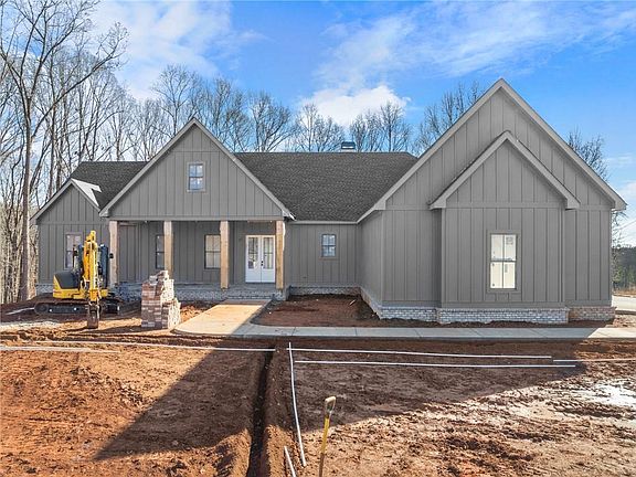 Stunning new construction home located in the highly sought-after Cherokee Bluff School District, perfectly situated on a private 3.19-acre estate-size lot with peaceful views behind the home. This custom build offers approximately 4,323 square feet under roof, including expansive covered porches designed for outdoor living. The main level features 10-foot ceilings, 8-foot solid core interior doors, a spacious owner’s suite, vaulted fireside family room, and an open-concept layout ideal for everyday living and entertaining. The custom kitchen includes white cabinetry, a large center island finished in Sherwin Williams Iron Ore, walk-in butler’s pantry, and quality finishes throughout. This home offers 4 bedrooms, 2.5 bathrooms, and a dedicated office, along with a game day porch with fireplace, perfect for year-round enjoyment. The unfinished terrace level offers approximately 2,313 square feet, already laid out and stubbed to mirror the main level with future bedrooms, bath, kitchen, and laundry providing incredible expansion potential. Additional features include a whole-house central vacuum system, Pella insulated windows, natural gas, city water, and septic system. The exterior showcases rough-sawn wood porch columns, a professionally landscaped yard with irrigation, high-end sod, and a 3-car side-entry garage. No HOA. Built with quality, attention to detail, and designed for both comfort and future flexibility. A truly impressive home that must be seen in person. Some Photos AI generated until completion of the home.