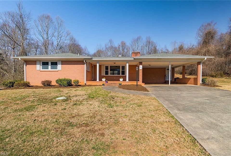 PLEASE SUBMIT BEST OFFERS BY 5PM TUES, 3/9. One-level living nestled on two acres in Tobaccoville! Enjoy the serenity this home brings with two acres of land with it. When it is cold outside, take in the wide-open spaces of the backyard from your sunroom or woodburning fireplace in the den. Sip your favorite beverage from the expanisive covered brick front porch on a pretty day. A 2-car carport leading into the spacious kitchen with an enormous amount of cabinet space and storage. Brand new luxury vinyl flooring in the kitchen and master bath with hardwoods in the dining room. Lots of natural light illuninate the spacious living room. Fresh paint throughout the home & beautiful built-in solid wood corner cabinets in the dining room. This home offers an enormous unfinished basement with woodburning stove. HVAC/Heat pump replaced 2018 & water heater replaced 2020. Enjoy the convenient location of being outside of the city with easy access to US-52. Home warr incl. SEE AGENT REMARKS.