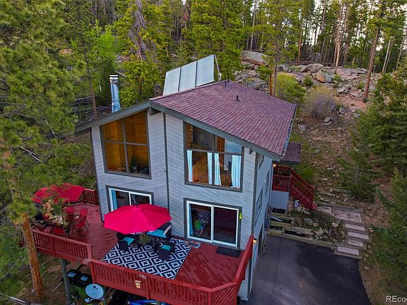 Nestled on a peaceful cul-de-sac and bathed in abundant sunshine throughout the day, this stunning mountain home underwent a beautiful remodel in 2020. The interior is adorned with exquisite hardwood and tile floors, complemented by soaring vaulted cathedral ceilings that boast dramatic floor-to-ceiling windows, offering breathtaking panoramic views of the majestic Arapaho National Forest.