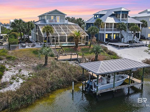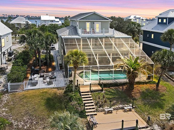 If amazing views is one of your must haves in a property then this is the property for you! This home has the most amazing sunset and sunrise views from the primary suite that spans the entire third floor. This home sits on a large highly elevated lot directly canal front on Ono Island. The screened in pool area and the Pub style bonus room on the first floor are perfect for entertaining. The pool bath as well as one guest room are also located on the first floor. The garage includes a large workshop as well as parking for 2 vehicles. The kitchen is located on the second floor, offers plenty of storage, granite counter tops, stainless appliances and comes equipped with a dumb waiter. The second floor also offers 2 guest rooms with jack and jill bathroom, living room, breakfast area and formal dining room. The entire third floor is the primary suite that includes 2 large walk-in closets, primary bathroom and porches on the front and back. Give me a call today for your private tour... you won't be disappointed!