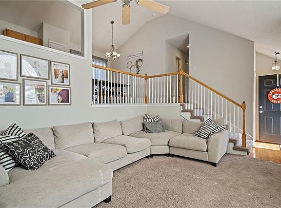 BOM at no fault of the Seller. All inspections done! This super cute F/B split is move in ready! 3 bedrooms, 2 full baths with a finished walk-out basement. Open & Bright with vaulted ceilings, NEW ROOF, NEW HVAC, fresh paint, sprinkler system, HUGE fenced yard and oversized deck. Kitchen features hardwood floors, breakfast bar, stainless steel appliances, and fridge stays! Spacious master bedroom with his/her closets and generous secondary bedrooms. The finished lower level provides a second living area and/or home office, for those working from home. Extra deep garage close to schools and quick access to I-35 & Gardner shops!