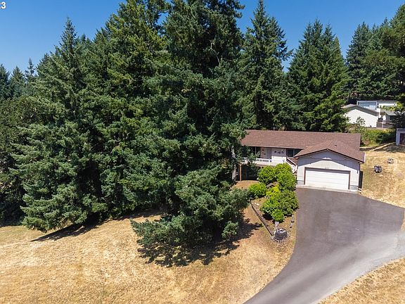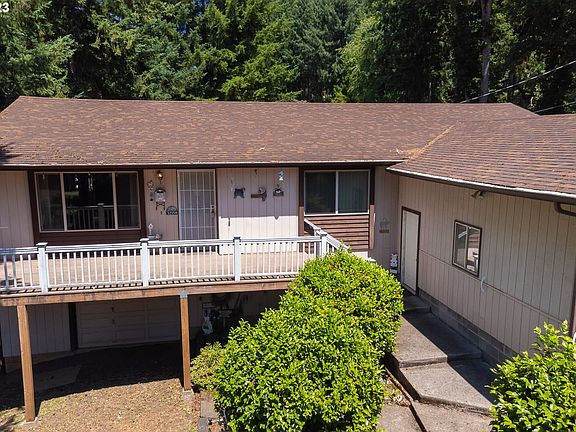 Well cared for and clean home on over an acre is ready for your personal touch. The spacious great room has vaulted ceilings and plenty of space for a dining table + a built-in eat bar. The kitchen has plenty of storage and the appliances will stay with the house. All three bedrooms are nice size with spacious closets and the primary bedroom has a full bath. Updated windows and central heat + AC will help keep you comfortable all year long. A large deck is a great spot to enjoy the peaceful location, wildlife, and take in the amazing views. There is a two car garage plus an additional storage area below the house- it has a garage door as well so can be used for additional parking. The additional garage leads under the house to even more storage and convenient access to the major systems. Located convenient to freeway access. Come take a look!