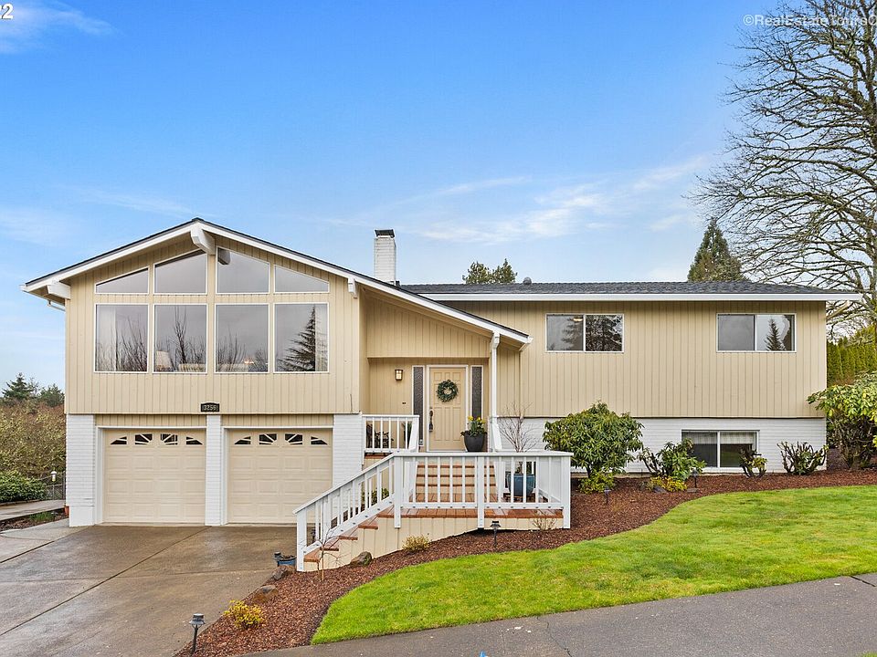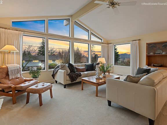 Forest Gale Heights floorplan you have been waiting for. You will be welcomed by a wall of windows and coast range views for miles. SW exposure in the huge vaulted living room with a brand new gas fireplace. Big eat in kitchen and dining room over look deck and enormous back yard. Large primary suite plus 2 additional bedrooms up. Downstairs has private entrance, suite sized bed/bath combo and a huge family room. 240SF work shop plus shed. This home is METICULOUS.