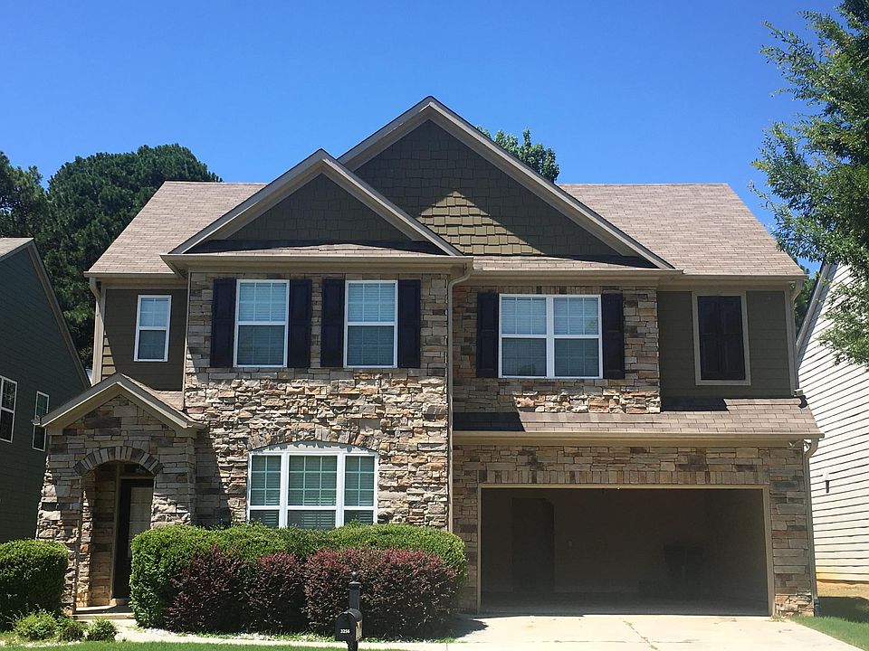 Beautiful Stone front single family home has 5 bedrooms and 3.0 bathrooms. Great house in Mill Creek school cluster. Easy Access to Interstate. Well maintained 5 bedroom 3 bath home with hardwood floors and bayed breakfast room. The Master Bedroom has his & hers vanities with separate tub and shower. Main Level has a bedroom with full bath. Renters pay all utilities. Lawn care (weed control) is included