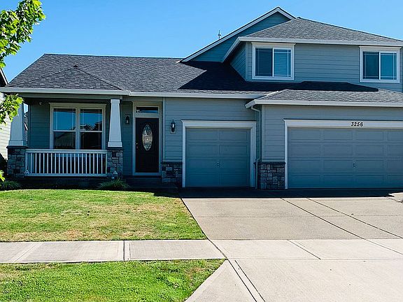 You will love this Woodburn home, large fenced back yard with sprinkler system, room to park your cars (3 car garage). Master bedroom on main floor, walk in closet with soaking tub. 2nd floor bonus room, perfect as a game room/office.Added custom blinds, kitchen tile backsplash, extended concrete pad, A/C, outdoor Storage Shed