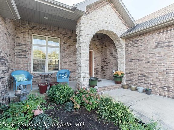 3256 W Cardinal, Springfield, MO 65810 Enjoy this open spacious floor plan with arched entryways, hardwood and ceramic tile floors throughout (excluding 2 downstairs bedrooms and the upstairs bonus room or 4th bedroom.) Light cabinets and lots of windows make this home light and bright. Granite counter tops beautifully accent the kitchen and don't miss the pantry! Beautiful custom blinds, stunning floor to ceiling stone gas fireplace and more. This second owner home as a custom build and you can tell. Original hardwood floors (matching entry) are under the vinyl floor put down for pets. Vinyl floor can be easily removed. Hardwoods in great shape except a few pieces near back door which could use some refinishing or replacing.
