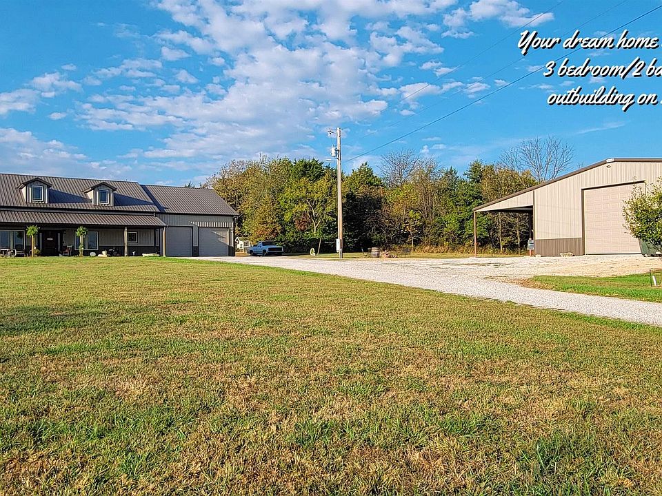 Gorgeous 3 bdrm 2 bath home with 40x60 outbuilding on 26 acres just minutes from historic Cole Camp, MO & Truman Lake! Soaring vaulted ceilings, beams & open lofts give this home a wonderful grand lodge feel. Beautiful stamped concrete floors give the appearance of hardwood floors without the maintenance. The open floorplan give wonderful views of the property from all the Therma-Tru doors & windows. Expansive living room gives ample room to entertain & a gas stove for those chilly nights. The chef's kitchen has soft close custom cabinets, newer stainless appliances & barn sliders on the pantry. Plenty of room in the dining area for the holidays. Large master bedroom boasts of walk-in shower, jetted tub & walk-in closet that is also a safe room. Walk-in closet is solid concrete all around with a steel door in case of storms. Two other nice size bedrooms on the other side of the home with a full bath between them. Two upper lofts give extra space for living area, office or sleeping loft. Just off the loft is a 10x44 heated & cooled storage room. Home was built with 2x6s & metal is in the concrete. Deep 2 car attached garage with extra storage. The heated 40x60 outbuilding is fully insulated with water, electric & 1/2 bath. A 20x60 lean-to is set up for an RV or other equipment. Located just off the backyard is a chicken house & 20x40 lean-to. The property is fenced with about 50/50 timber and open pasture. Lots of ATV trails & tons of wildlife on this amazing property. Hurry!! This one will not last!!