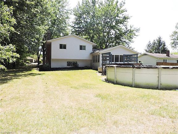 Spacious 4 bedroom split level situated on over a half acre treed lot. On the main level you will find the eat in kitchen with tons of cabinets and villa stone flooring. Formal living and dining rooms. The finished lower level features a family room with wood burning fireplace, the 4 bedroom with laminate flooring, 1/2 bath and laundry room with nature stone flooring. The remaining 3 bedrooms and full bath are on the second level. Sliders in the dining room lead to the enclosed back porch overlooking the above ground pool. This home includes a home monitoring system. Completed by a 2 car garage this home is just waiting for your special touches.