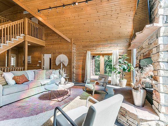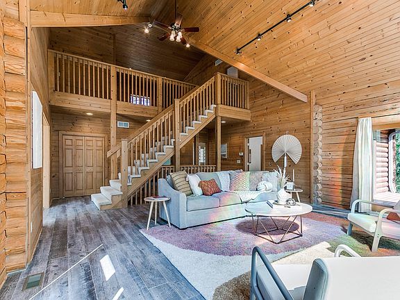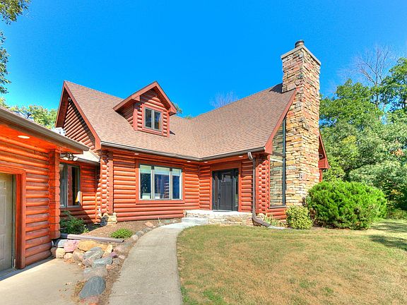 Welcome to your secluded log cabin retreat on 6+ acres of picturesque land. This charming 1.5-story log cabin is a rustic paradise nestled in a private oasis, offering the perfect blend of nature & comfort. As you step inside, you're greeted by a vaulted Great Room w/ a stunning floor-to-ceiling stone fireplace. The abundant natural light streaming through the windows highlights the beautiful 9'' log construction & creates a cozy atmosphere. The Primary Bedroom is conveniently located on the main floor along w/ Full Bath w/ jetted tub as well as a designated Office Space & Laundry Area. The spacious Kitchen & Dining Room is an entertainer's dream, with ample counter space, storage, modern appliances & large island. Adjacent to the Kitchen, you'll find a 4 Seasons Room; this versatile space is perfect for any season. Ascend the stairs to discover a large Loft Area, 2 charming Bedrooms & Partial Bath. Step outside onto the multiple Decks, where you can soak in the tranquility of your private haven. The fenced-in yard offers additional safety & peace of mind. The 3-car oversized Garage & unfinished Basement provide ample space for all your needs. Tucked away from the hustle & bustle of city life, this property offers unparalleled seclusion & privacy. It's an ideal setting for those seeking a retreat from the everyday hustle. Don't miss this rare opportunity to own a piece of paradise w/ all the modern comforts & peaceful setting. Your dream log cabin retreat awaits!!
