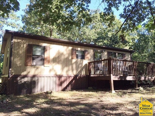 Secluded country home on 6 acres with 2 bedroom, 1 1/2 bath home with large living area, deck, shed, private well & septic. All wooded with seasonal Truman Lake view. 5 minutes to Warsaw. Close to boat ramps. Lots of wildlife.