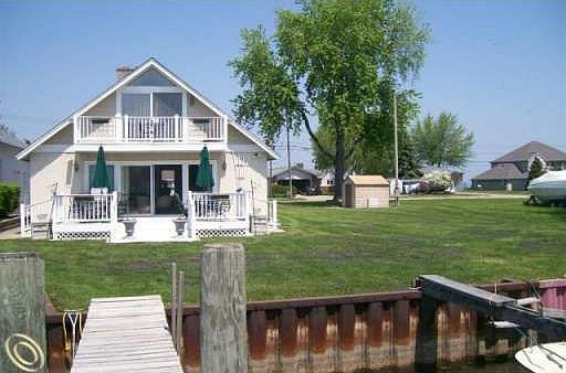 80 Ft. River frontage with outstanding view from every room. Very open and spacious floor plan. 4 large boat wells, one small well. One large well had hoist. 2 balcony decks and another deck. Lots of parking on double lot. Meticously clean and tastefully decorated. Must see to appreciate! Price and compare! Just a few minutes to lake.