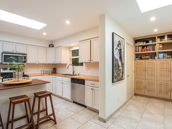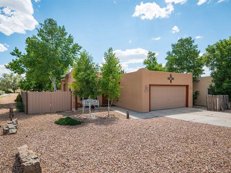 Immaculate gem in Pueblos Del Sol with a gorgeous kitchen and tasteful designer baths. Great floor plan with abundant natural light, numerous skylights, and quality tile and wood floors throughout. Enjoy Santa Fe evenings from the large, fenced and landscaped backyard with an outdoor fireplace, many nice trees, and a large storage shed; adjacent to neighborhood walking path. Radiant heat, Evaporative cooling, spacious laundry room, built-in storage, and a two-car garage.