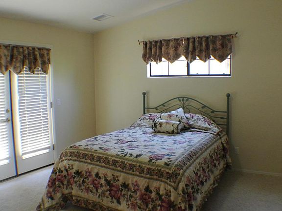 This darling home in The Courtyards has one of the largest lots and LONGEST driveways in the community! Private fenced yard backs to HOA land! Open floor plan, lots of windows/light + 3 patio areas to enjoy! Living rm w/vaulted ceilings, skylight, fireplace & french doors to front patio- could be private courtyard oasis! Wheel chair ramp at the front door! Tiled entry, large dining area, sunny kitchen w/pantry & direct garage access, (only attached to adjacent home @ garage)! Spacious master bedroom- shower, tub & dual sinks in master bath! 2nd bedroom w/french doors to patio area. Guest bath has dual sinks/skylight. Nice, gated 55+ community close to shopping! HOA pool, spa, clubhouse, work-out room, kitchen, library + lots of activities/clubs to join! Don't wait- see this one now!!