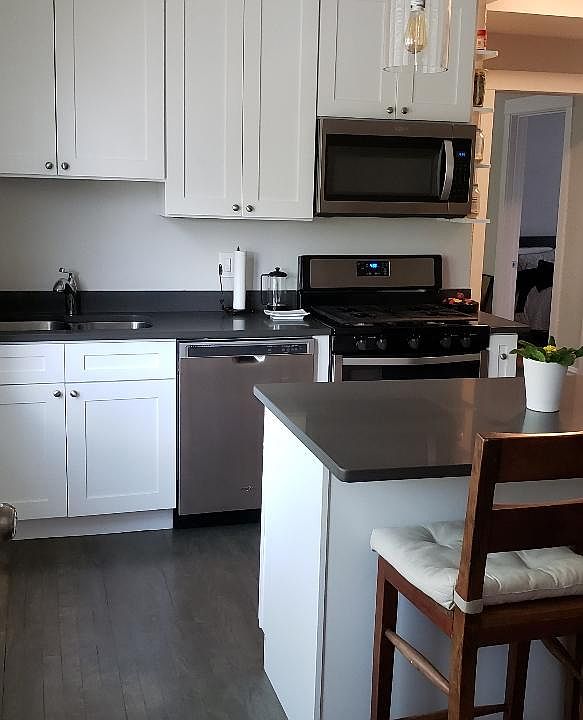 - Rehabbed 900 SF 2 bed 1 bath, condo quality, top floor, with private balcony. - All new stainless steel appliances, including dishwasher, and garbage disposal. - New central AC and gas forced air heating systems, and fully renovated bathroom. - New hardwood flooring throughout, stained natural oak. - Free laundry in basement & lots of storage common storage in basement. - Avondale neighborhood, in walking distance to Addison or Belmont Blue Line - Walking distance to Walgreens, neighborhood retailers and restaurants. - Very close to the Irving Park Milwaukee District Northline Metra - Tenant responsible for utilities - Pets considered, at an additional one time fee. - No security deposit; $650 non refundable admin/move in fee.