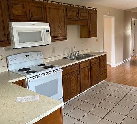 Gorgeous 3 bedroom home! Large living room, dine in kitchen with lots of counter space, full bath, large separate utility room. Laminate and tile flooring. Carport. Central Air and Gas Heat. HUGE 10 x 16 deck out back. Metal roof. Detached two car garage and a storage shed. KU electric. All this in a GREAT location not far from the Bypass! Call today!