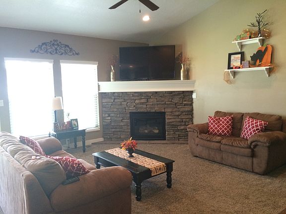 This move-in ready, spacious home comes with views of the mountains on almost a half acre. Desirable amenities throughout this family friendly, 5 bedroom 3 1/2 bath home, includes granite throughout, tile bathrooms, laminate flooring, stainless steel appliances, 4-car garage for all the toys, custom storage shelves, large cold storage, 2 fireplaces and the one in the basement is furnace rated to keep you toasty during the winter. Basement ceiling has spray foam insulation for sound proofing with custom surround sound for movie nights! Master has a large bathroom with separate tub and shower! Come take a look before it's gone! Buyer to verify all information. Agent related to seller.