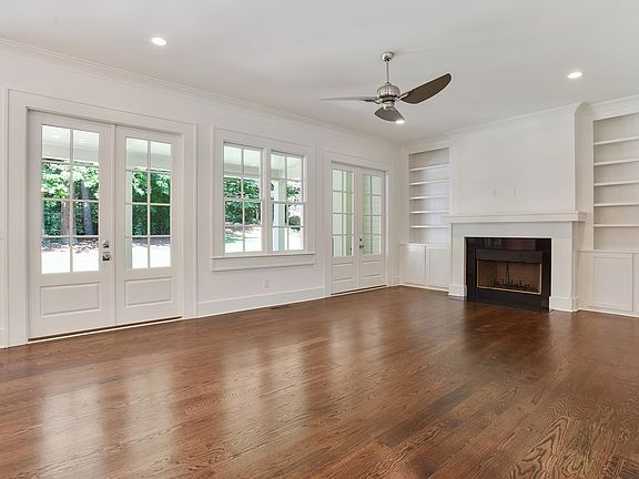 Just completed signature home in Pine Hills Buckhead. Beautiful hilltop setting with first floor Owner's suite open to rear garden patio. First floor guest suite and outdoor living room with cozy fireplace. Remarkable live-in kitchen. Garage enters on main level - not drive under.
