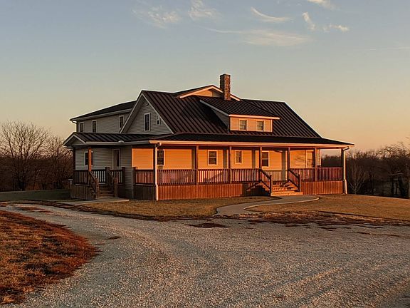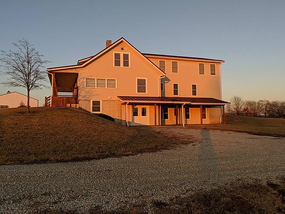 One of a kind 8-bedroom, 5 bath home with full walk out basement. A cedar deck overlooks the surrounding countryside for a breath-taking view. This home would be great for a growing or extended family and a bed and breakfast. It is on blacktop with a tree lined private land back to the home. Included is a 12X32 shed with electricity and a small fenced pasture for cattle or horses. 32570 Prairie Ave, Jamesport, Daviess County
