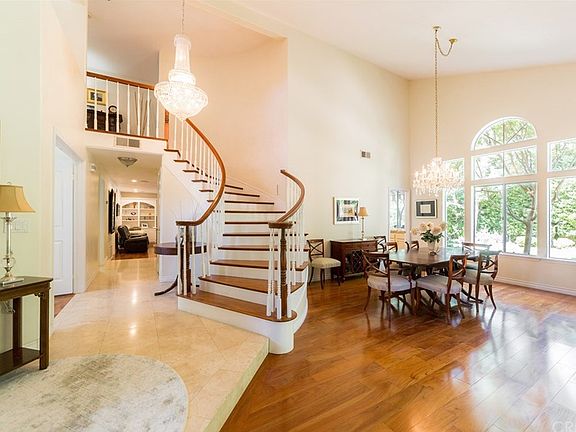 Look no further, presenting this Oakmont Hills highly sought after floor-plan in the Three Springs Community. This 3,336 square foot home has 4 bedrooms, 3 Baths and boasts 1 of the bedrooms & 1 bath downstairs. Travertine stone entry and Brazilian Cherry hardwoods are found throughout the home including the stairway and upstairs bedrooms (no carpets). The home also features many upgrades, from a beautiful kitchen with with center island, stone counters, skylights, walk-in pantry and open floor plan to the adjacent family room with fireplace. The grand entry features the wood circular stairway, formal dining room and vaulted ceilings. Upstairs you will find many built-ins, custom organized closets, 2 additional fireplaces and plantation shutters. The Master bedroom features a private balcony, fireplace, walk-in closet with organizers and finally a large ensuite with separate tub and shower. The yard is well landscaped and very private with concrete patios, fountains and grassy areas. This home is located near the entrance of Three Springs neighborhood, so it's in walking distance to the lake, tennis /swim club, fine dining, shopping and public parks. The highly rated Las Virgenes Unified School District