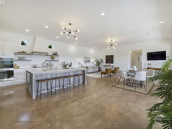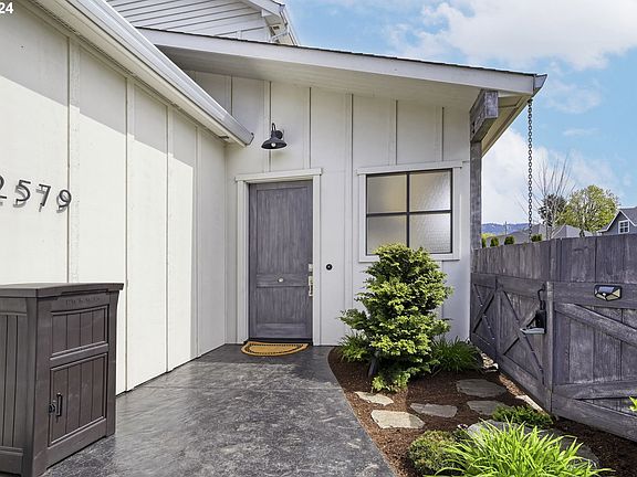 Experience the epitome of contemporary luxury boasting w/ natural light throughout within this stunning Modern Farmhouse design nestled in desirable Coburg. Only minutes away from Eugene. The main-level owner's suite offers a sanctuary of comfort with a spacious walk-in closet, roll-in shower, and elegant pedestal tub. The gourmet kitchen beckons with its island, Quartz counters, and designer lighting, creating a perfect space for culinary adventures. Kitchen also features built-in double oven, built-in microwave, gas range & wine cooler. Upstairs, two additional bedrooms, a full bath, flex space, and a separate living area with a kitchenette provide versatility and convenience. Step outside to the covered patio, complete with an outdoor kitchen, private garden, gas BBQ, and fire pit, where relaxation and entertainment intertwine seamlessly. With close proximity to parks, farms, shopping, restaurants, and excellent schools, this property presents an unparalleled opportunity to embrace a lifestyle of modern elegance and convenience in a desirable location. No HOA! Radiant floor heating throughout.